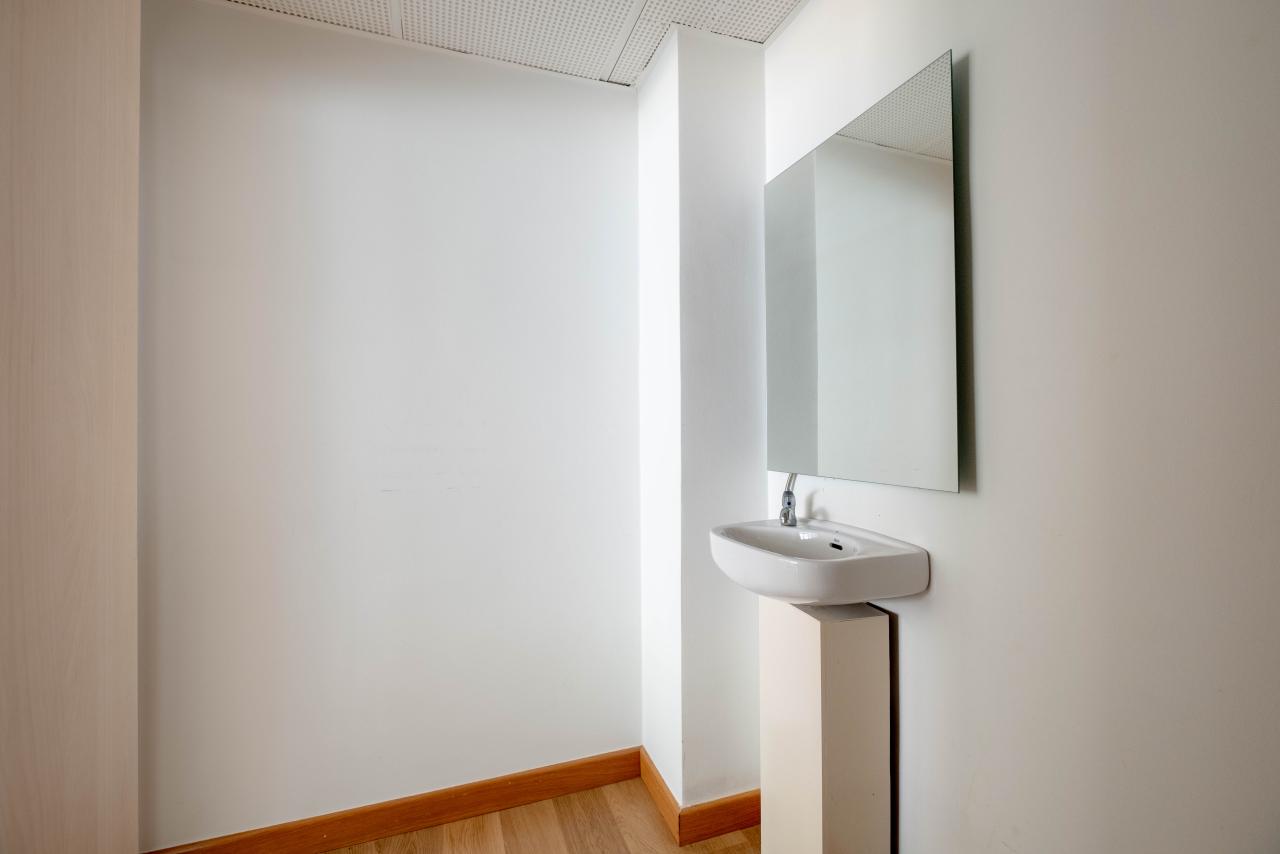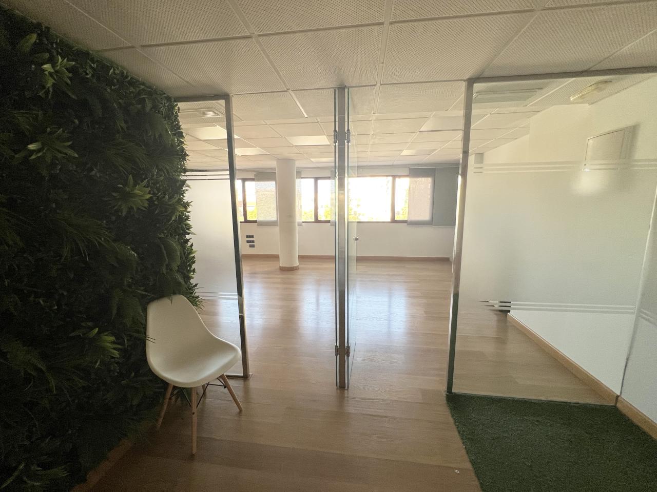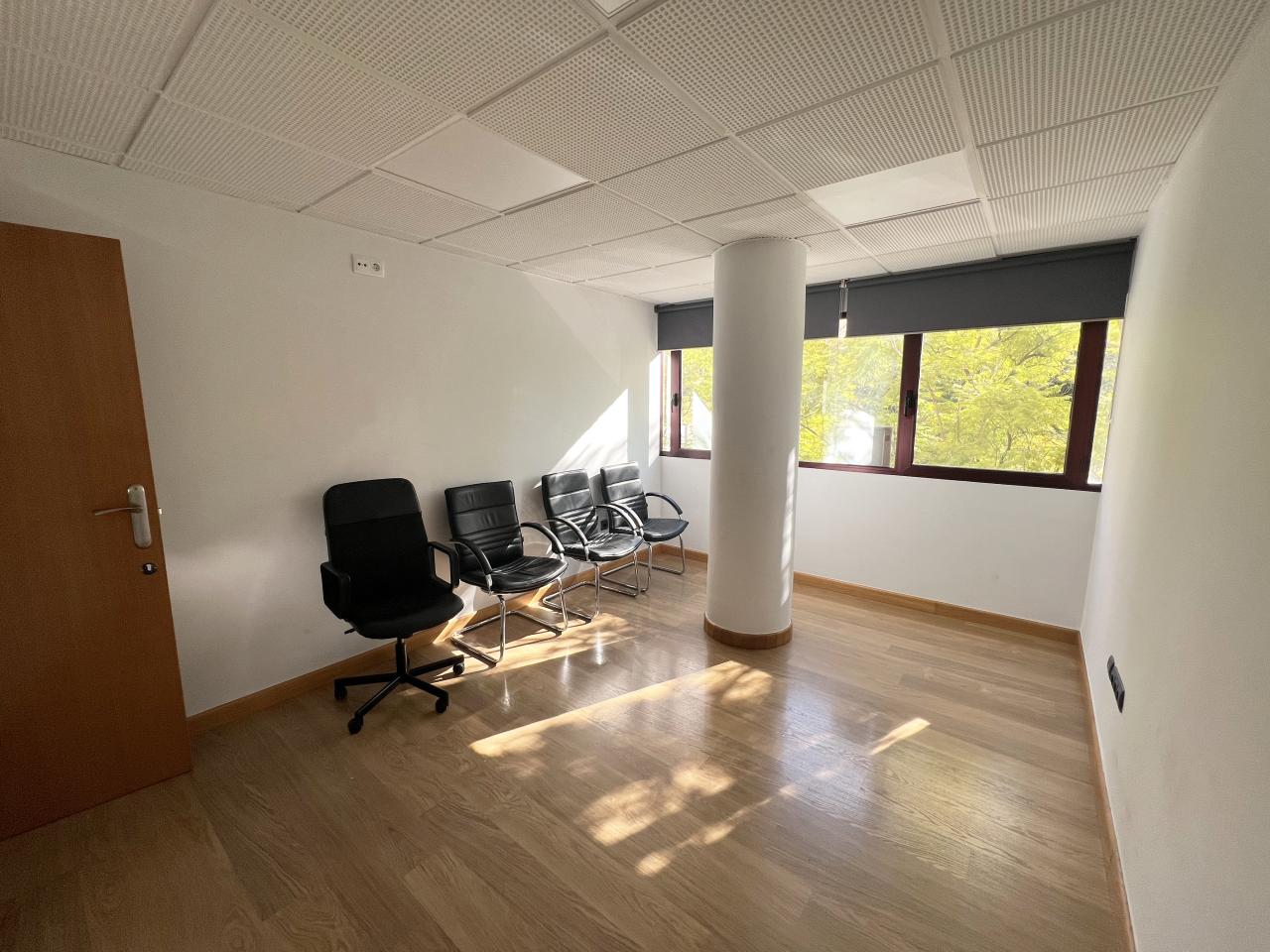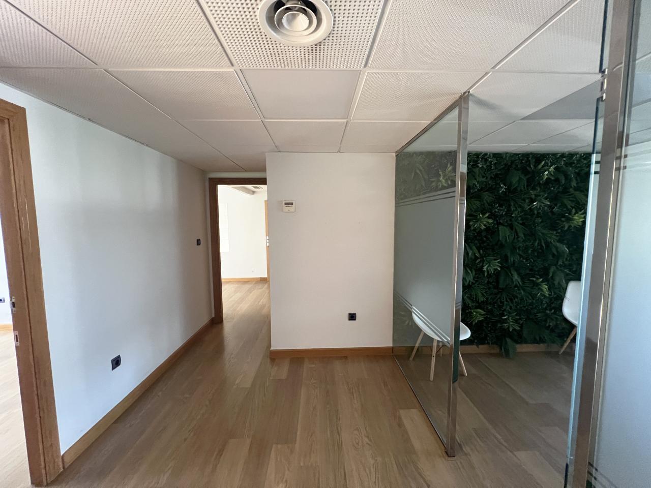 La oficina se organiza de forma funcional y muy versátil, comenzando por una cómoda zona de recepción que articula el espacio y aporta una imagen profesional desde el primer momento. A partir de ella se distribuyen cinco salas amplias y muy bien proporcionadas, todas con luz natural, que permiten múltiples configuraciones según las necesidades del usuario: despachos independientes, puestos de trabajo compartidos, salas de reuniones, gabinetes profesionales o espacios polivalentes.
