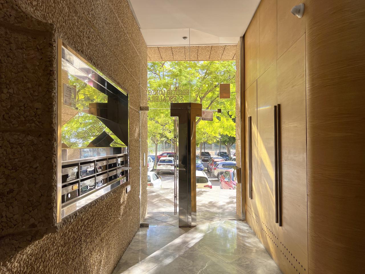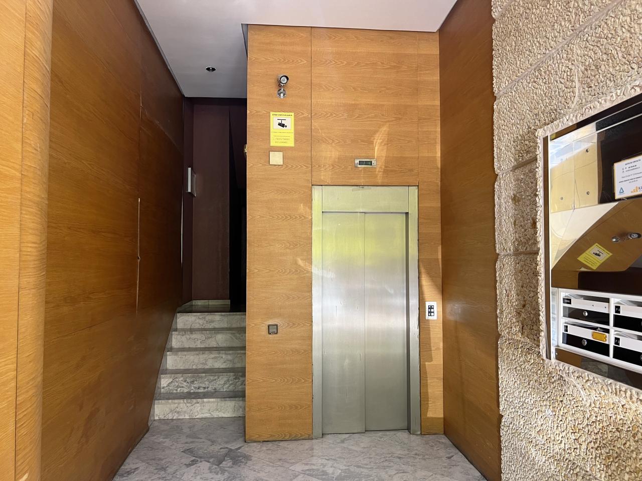 El edificio ofrece un acceso representativo y elegante. El ascensor y la escalera desembocan en un rellano de uso exclusivo para la oficina, que dispone de dos entradas independientes, aportando privacidad y funcionalidad.