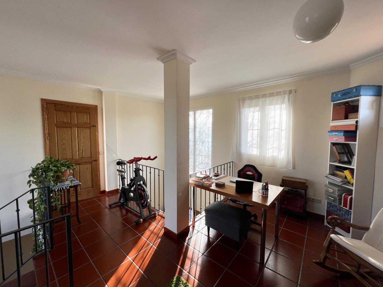 En la planta superior encontramos un espacio actualmente destinado a biblioteca y despacho, lleno de luz natural y con múltiples posibilidades de uso. Desde aquí se accede a una terraza con vistas abiertas al entorno natural.