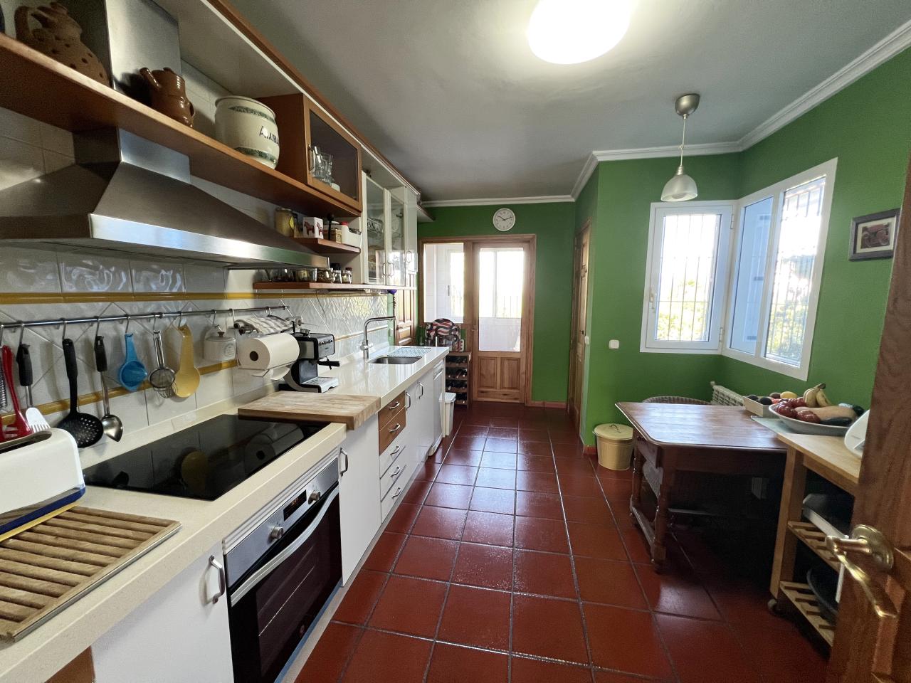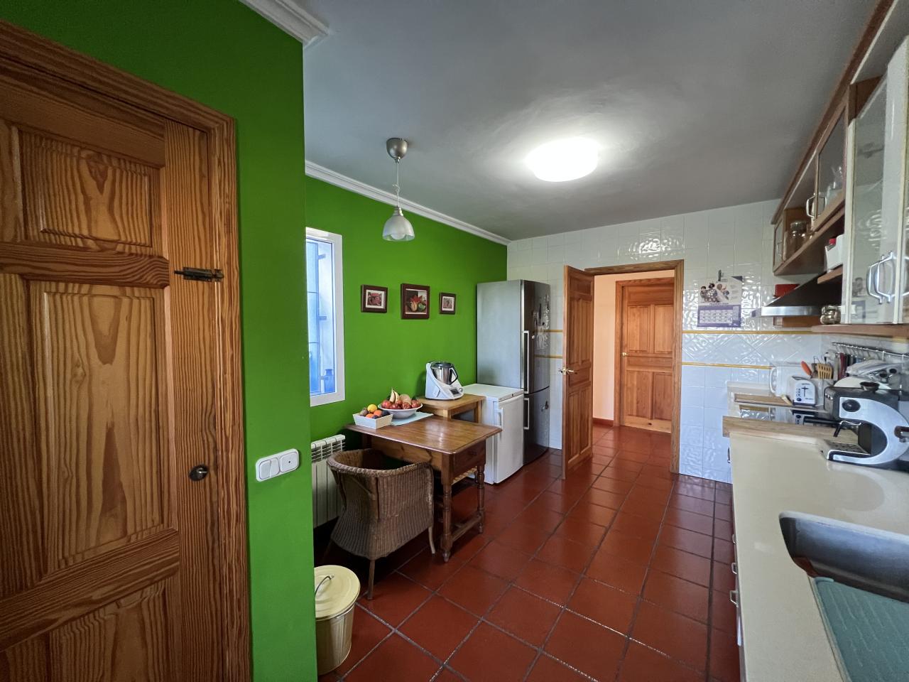 La cocina, amplia y funcional, dispone de una pequeña zona de comedor, despensa independiente y acceso directo al lavadero. Desde aquí también se accede al porche trasero con cenador, un espacio perfecto para comidas al aire libre y reuniones familiares.
