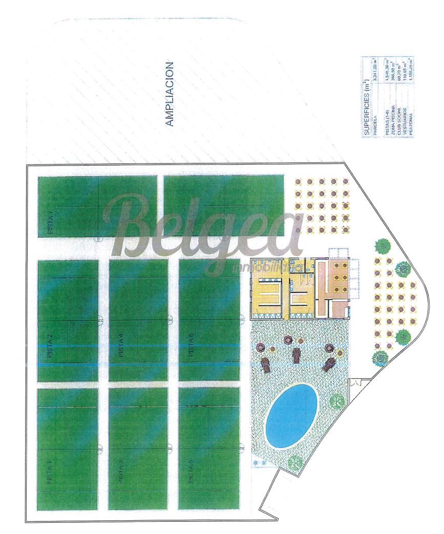 El croquis de viabilidad anexo propone un complejo de seis pistas de pádel, edificio de vestuarios y recepción, zona ajardinada y área de descanso con piscina, reflejando el enorme potencial de esta parcela para transformarse en un referente deportivo y social en el entorno del Hospital de la Arrixaca.