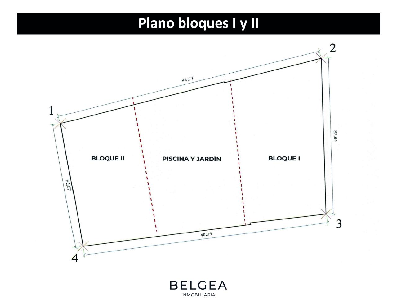 Gracias a su configuración, es ideal para la construcción de dos bloques de viviendas que compartan un jardín y piscina privada central, aportando exclusividad y confort a los futuros residentes.